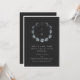 This wedding invitation features a circle of watercolor moon phases forming a wreath around personalized couple initials on a deep charcoal black background, with clean white sans serif typography below for names, date, and venue details. The moody, celestial design is a bold alternative to traditional wedding stationery — perfect for the couple who loves the night sky, astronomy, or wants their wedding to feel mysterious and romantic. A great fit for evening ceremonies, planetarium venues, or outdoor stargazing weddings. Personalize with initials, names, date, and event details.