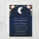 Convite Celestial de Casamento. Céu azul de água com estrelas e a lua. Borgonha azul rosa azul brilhante. Greenery Eucalyptus Sai. Foto de volta.