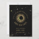 Foto personalizada mística celestial salvará a data que apresenta o céu da meia-noite galáxia com poeira estelar, lua crescente e outros símbolos astrológicos em cores pretas e ouros e citação escrita "CAUSA NO CHEIO CÉU DAS ESTRELAS EU VI VOCÊ". Este cartão é facilmente editável. Se precisar de ajuda para a personalização desta placa ou se precisar de mais produtos correspondentes para esta coleção, envie-me gentilmente através do Zazzle.