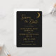 Anuncie seu dia especial com estilo neste cartão de Save-the-Date celestial, apresentando um fundo preto com sotaques de lua e estrelas douradas cintilantes. Fontes elegantes e serifadas destacam seus nomes, data do casamento e local em um tema cósmico sofisticado. Perfeito para casamentos celestiais, cerimônias sob as estrelas ou celebrações noturnas elegantes, este cartão de Save-the-Date personalizável combina perfeitamente com convites, cartões de RSVP e notas de agradecimento correspondentes. Impresso a 350 DPI em papel cartão premium para detalhes e qualidade impressionantes.