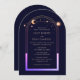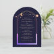 Celestial Rainbow Sun Star Moon Astronomy Space Wedding Invitations features sun, moon and stars with a pastel rainbow colored frame on a dark navy blue background. Inside is your custom wedding invitation information. Personalize by editing the text in the text boxes. Designed for you by ©Evco Studio www.zazzle.com/store/evcostudio