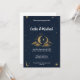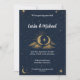 Elegant celestial wedding invitation featuring a mystical gold moon and stars over a deep navy blue background. Perfect for a 'written in the stars' or starry night wedding theme. Fully personalizable.