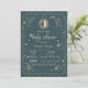 Celestial gold sun and moon, and stars on a watercolor sage green background. These baby shower invitations are easily customized for your event by simply adding your details.