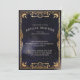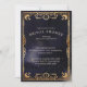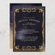 Beautiful holistic and spiritual tarot card style bridal shower invitation design. The design features our own hand-drawn holistic sun and moon tarpt card design in faux gold glitter. The design is created with intricate and decorative details. The background features a bold navy blue and gold design with twinking faux gold stars. Customize with your monogram, bride's name, event details, and time. The reverse side features a bold navy blue ink background with faux gold accents along with a gold moon design element.