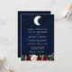 Convite Celestial de Casamento. Céu azul de água com estrelas e a lua. Borgonha azul-rosa azul-borrifada Marsala. Greenery Eucalyptus Sai.