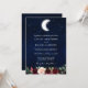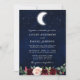 Convite Celestial de Casamento. Céu azul de água com estrelas e a lua. Borgonha azul rosa azul brilhante. Greenery Eucalyptus Sai. Foto de volta.