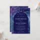 Apresentando o convite para o casamento "Celine", com um design celestial impressionante com um arco moderno. O fundo azul e púrpura de aquarela imita a beleza de um céu noturno estrelado, enquanto o layout arquitetado adiciona uma reviravolta contemporânea. Estrelas são espalhadas pela carta, criando uma vibração cósmica, mágica perfeita para casamentos à noite ou ao ar livre. Esse convite combina elegância do eterno com uma estética sonhadora, etérea, fazer ideal para casais que buscam um tema celeste ou cósmico. Os recursos traseiros, a noiva personalizada elegante e o monograma do noivo. Personalize-o com seus detalhes de casamento para criar um convite que é realmente único e bonito!