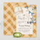 Este convite personalizado de chá de bebê com tema de golfe argyle amarelo apresenta uma cena de golfe divertida com uma bandeira de buraco, carrinho de golfe, boné e grinalda e a frase vamos fazer uma festa, criando um design brilhante e alegre. O padrão amarelo adiciona energia e calor.