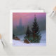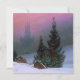 Cartão com pintura a óleo de Caspar David Friedrich Cena de Inverno (1811). Neve e pinheiros preenchem a paisagem. Um jovem reza sobre uma rocha para a Santa Cruz. Uma igreja aparece na névoa. Um presente de Natal maravilhoso!
