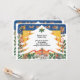 Imagem de Natal com ilustração antiga apresentando Papai Noel voando em seu trenó com renas. Uma árvore de Natal fofa com velas e azevinho.