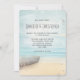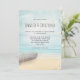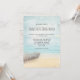 Um convite de casamento com uma imagem bonita e tranquila. Cores sutis de azul claro, marrom arenoso e branco suave. Uma cena de praia com um barco na costa e um farol desbotado ao longe com pássaros voando ao redor. Um visual elegante e desgastado.