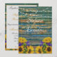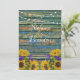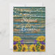 Um convite para o casamento Rustic Distress Blue Fence and Daisies, com uma bela cerca azul horizontal distante, margaridas ligeiramente transparentes e cordas leves cintilantes.
