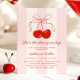 Celebre o amor e a alegria com este encantador chá de panela de cereja! Apresentando uma ilustração de cereja vermelha branca amarrada com um fundo listrado de cor-de-rosa suave e arco, esta design é perfeita para um tema lúgubre e doce de chá de panela. A tipografia da na moda adiciona um toque moderno, fazer ideal para as celebrações da moda.