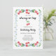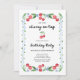 Estes convites de festas de aniversários coloridos apresentam um design branco, estilo avenês, de cereja vermelha, estilo cereja, com uma moldura azul-aquática e flores, e pontos verdes bonitos. A escritura legante da vintage diz que ela é a "cereja no topo." Este design chic e na moda é perfeito para o aniversário de qualquer um, incluindo adolescentes, crianças e adultos!