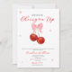 Celebre a chegada com este charmoso convite de cereja no chá de fraldas! Apresentando uma cereja doce no centro, cercada por delicadas estrelas rosa e um arco adorável, é a forma perfeita de convidar os entes queridos para uma celebração alegre.