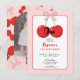 Convite Cerejas Vermelhas com Laço Rosa Coquette 1º Aniver