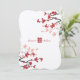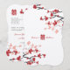 Flores de Cerejeira Brancas/Vermelhas/Sakura de Primavera e Cartão Chato de Convite de Casamento Chinês Duplo Feliz de Dupla Face Moderno.