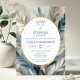 Celebre seu amor com elegância eterno. Este convite de compromisso personalizável apresenta um pano de fundo artístico de texturas falsas inspiradas em pinceladas e folhas suavemente em tons sonhosos de azul empoeirado, branco de marfim, prata e bronzeado. O design irradia calor e sofisticação, com o texto central do convite enquadrado como dentro a típico oval branco, esboçado com uma borda de folha falsa e brilhante para um toque gracioso de acabamento. Perfeito para casamentos, renovações de votos, cerimônias simbólicas ou celebrações LGBTQ+, este convite é tão único quanto a sua história de amor. Personalize cada detalhe para torná-lo verdadeiramente seu.