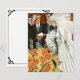 Ilustração antiga de amor e romance com uma noiva e um noivo se casando. Um celebrante ou padre está realizando a cerimônia de casamento. Há muitas arranjos florais ao redor deles e a noiva está segurando um grande e lindo buquê de flores brancas.