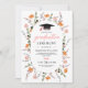 Flores silvestres coloridas enquadram um chapéu de graduação rosa e preto para uma cerimônia de formatura, com tipografia personalizada em rosa e preto.
