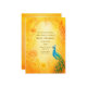 Celebre as cores alegres da tradição com este convite lindamente desenhado para a Cerimônia Haldi da Noiva Indiana. Com um majestoso pavão em aquarela, sutils detalhes florais e uma paleta pastel serena, este convite captura a essência de um vibrante ritual hindu pré-casamento.