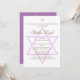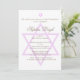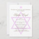 Uma garota convidada para um Dia de Nomeação. O modelo tem design púrpura bonito com a Estrela de David na frente. O modelo de design é roxo com um texto dourado que é facilmente alterado para suas informações. Escolha entre uma faixa de tipos de papel. O reverso tem um padrão Star de David repetindo.