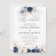 Convite à cerimônia de Rosa marinho Azul e Dusty. Este na moda e elegante Convite para Chá de Casamento apresenta um Marinho Azul e Dusty Rosa Floral lindíssimos pintados à mão. Localize itens correspondentes na Coleção Floral Marinho Azul e Dusty Rosa.