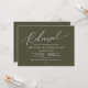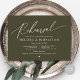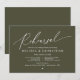 Anuncie a sua alegria para sempre em estilo com o nosso moderno cartão de convite para comemorações de celebração do ensaio de casamento com o tema verde-oliva. É ideal para casais que decidiram celebrar a noite antes do seu grande dia. Com seu design sofisticado, mas lúdico, este convite certamente define o tom de um evento inesquecível. A carta de convite apresenta o moderno design de roteiro romântico, adicionando um toque de elegância do eterno à sua celebração. Projetado por TeeshaDerrick