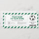 Convite de Certificado de Bilhete de Jogo de Presente Surpresa de Futebol. Marque um gol com o nosso Modelo de Bilhete de Presente de Jogo de Futebol. Personalize para um presente perfeito e dê a emoção de uma experiência de jogo ao vivo. É um presente digno de um gol para qualquer fã de futebol!
