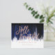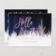 Um moderno e na moda, certificado de presente alô, um belo cartão de visita com tipografia moderna de pincel, estilo de letra, em folha de ouro falso rosa, em uma moda, elegante, pinceladas brancas e azuis. Se precisar de alguma personalização, não hesite em me contactar