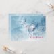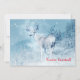 Um convite de festa de Natal com uma foto temática festiva cênica. Um fundo filtrado em azul gelado dá a essa foto uma aparência de inverno frio com um toque mágico. Um nobre cervo está em pé em uma colina com pinheiros invernais ao fundo