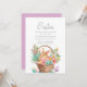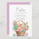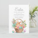 Páscoa e convite à caça de ovos para famílias com um belo coelho numa cesta cheia de ovos e flores de Páscoa. Entre em contato conosco para obter ajuda com a personalização ou para solicitar produtos correspondentes ou coordenadores.
