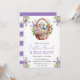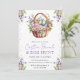 Convide seus convidados para uma alegre celebração da Páscoa com este lindo convite. Com uma adorável cesta cheia de ovos de Páscoa em cores pastéis e flores vibrantes da primavera, este design captura a essência da estação. Os suaves acentos lavanda e toques dourados adicionam um toque elegante à natureza alegre do design. Perfeito para um brunch de primavera e caça aos ovos, este convite define um tom festivo para o seu evento de Páscoa e certamente vai deliciar todos os convidados.