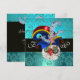 Elegante, sofisticado, legal, design de monograma único com um chapéu Elfico azul verde corujas engraçadas e expressivas, trevos pedras preciosas rubi safira vibrantes e flores damasco azul aqua verde-teal.Fácil de personalizar com suas iniciais e texto próprio como anúncio de festa de aniversário ,casamento ,cartões de lugar,save-the-date, cartões de agradecimento,chuvas de noiva, festas,chuvas de noivado, ou praticamente qualquer evento que você desejar! Modelagem e renderização nurbs muito precisas por Bulgan Lumini (c) .Parte da série Hyper Talismans.