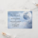 Convite de casamento com um céu de fantasia mágico com nuvens azuis e uma lua grande e bela. 2 cisnes brancas voando juntas.