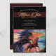 Pintura romântica de cavalos correndo em uma praia ao pôr do sol, perfeita para convites de casamento Elegantes! personalize o seu para um toque elegante e pessoal no seu evento especial!