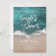 O convite para chás da região romântica casal com temas da costa apresenta belos abstratos com cor d d d d d d d d água e fundo oceânico cintilante, tocado com na moda e detalhes elegantes do evento de fontes, modernos e simples, excelente para o casamento da praia de areia, casamento de destino tropical, casamento com temas do oceano costeiro. Veja todas as peças correspondentes na coleção.