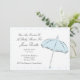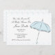 Um parasol azul bonito em um fundo azul das bolinhas faz um convite doce que você possa personalizar. Edite o texto para fazer este convite para um chá de panela ou um chá de fraldas.