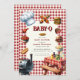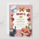 Atirem a grelha para uma festa de chá de fraldas divertida e saborosa com este charmoso convite do "Baby-Q"! Apresentando ilustrações adoráveis de aquarelas da grana clássica como hambúrgueres, cachorros-quentes, milho no berço, e feijão-assado, todos colocados contra um clássico fundo de gingham vermelho e branco. Este convite capta perfeitamente o espírito casual e festivo de um chá de fraldas de CHURRASCO de quintal. É ideal para convidar amigos e família a honrarem os pais a serem com um evento maravilhoso e memorável. Faça do seu chá de fraldas um sucesso de "fumaça" com este design único e atraente.