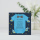 Adorável convite de chá de veleiros azuis e amarelos. Adicione seus detalhes a esta camisa de bebê azul e arco com convite para chá de fraldas azul e amarelo para veleiro adicionando detalhes de evento, estilo de fonte, tamanho de fonte e cor e texto.