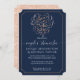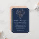 "Convite para Chá de Rosa Dourado de Letra Glitter Script Love Casal."  O fundo azul marinho profundo dispara o script de caligrafia, que foi escrito por Audrey Jeanne, e então criado em um texto reluzente de ouro rosa, rodeado por pinceladas rosas de espiral rosa em forma de coração.  O reverso é um olhar rosa de ouro brilhante.   Todo trabalho de arte foi criado por uma artista e designer internacionalmente licenciada, Audrey Jeanne Roberts, copyright.