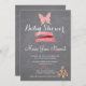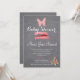Borboleta rosa-reluzente-rosa-bebê, flores, fita e corações-rabo, modelo de chá de fraldas de convite para no fundo do quadro-negro da cinza-escura. Ideal para ilustrações de aquarelas quic na moda vintage país rústico | primavera verão | festa de chá de menina do jardim rural.