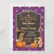 Perfeito para outono, época de Halloween.Receba este convite bonito agora! Tema: Halloween - truque ou trato.Estilo: Vintage retro com um toque de chic moderno.Cores: Roxo, ouro, laranja, preto.Gráficos: abóboras, saco de tratamento, doces, estrelas douradas e quadro retro (estão disponíveis em compro outras tonalidades da pele e sexo)