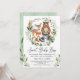 Convite para chás de fraldas de madeira branca com ilustração adorável de aquarelas de cinco amigos da floresta e verde botânico macio
