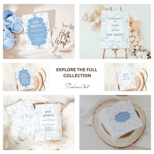 Toile De Jouy vintage, chá de fraldas cobalto azul