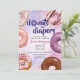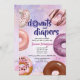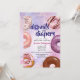 Uma variedade de donuts se organiza ao longo das bordas deste convite que pode ser usado para um bebê borrifador, chá de fraldas ou até mesmo um gole e ver. O fundo é uma lavagem de aquarela multitons com placas de tinta aquosa e brilho dourado falso. O "O" em "Rosquinhas e Fraldas" é acentuado com uma roxa de roxo listrada. Disponível com produtos correspondentes.