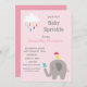 Convite Chá de aspersão de bebês rosa, gatas elefantes