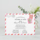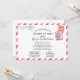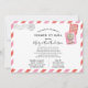 Um convite de chá de bebê pelo correio é perfeito para aqueles que moram longe de seus entes queridos, mas ainda querem presentear os futuros pais com amor e presentes para se prepararem para a chegada do bebê. Este convite de chá de bebê à distância pelo correio é editado para parecer um cartão postal antigo e apresenta o poema de pedido "É difícil viver tão longe Quando o Bebê está a caminho. Reunir os entes queridos pode ser tão difícil Então, se desejar, por favor envie seu presente ou cartão. E conforme eles chegam dia após dia, Eles sentirão todo o seu amor de longe." Personalize com suas palavras. Clique em "Personalizar ainda mais" para editar o estilo, tamanho e cor da fonte, se desejar.