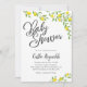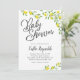 Convite de chá de bebê com tema de limão fofo com ilustração pintada à mão de limões amarelos e flores em um galho de árvore verde. Perfeito para um chá de bebê de verão neutro em termos de gênero.