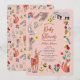 Chá de bebê para menina com animais da floresta, flores e pássaros. Arte original de Caroline Bonne Müller
